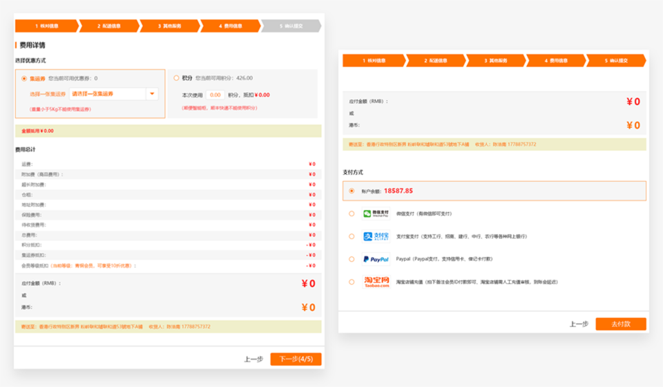 集運有錢包支付、支付寶支付、微信支付、淘寶店鋪支付